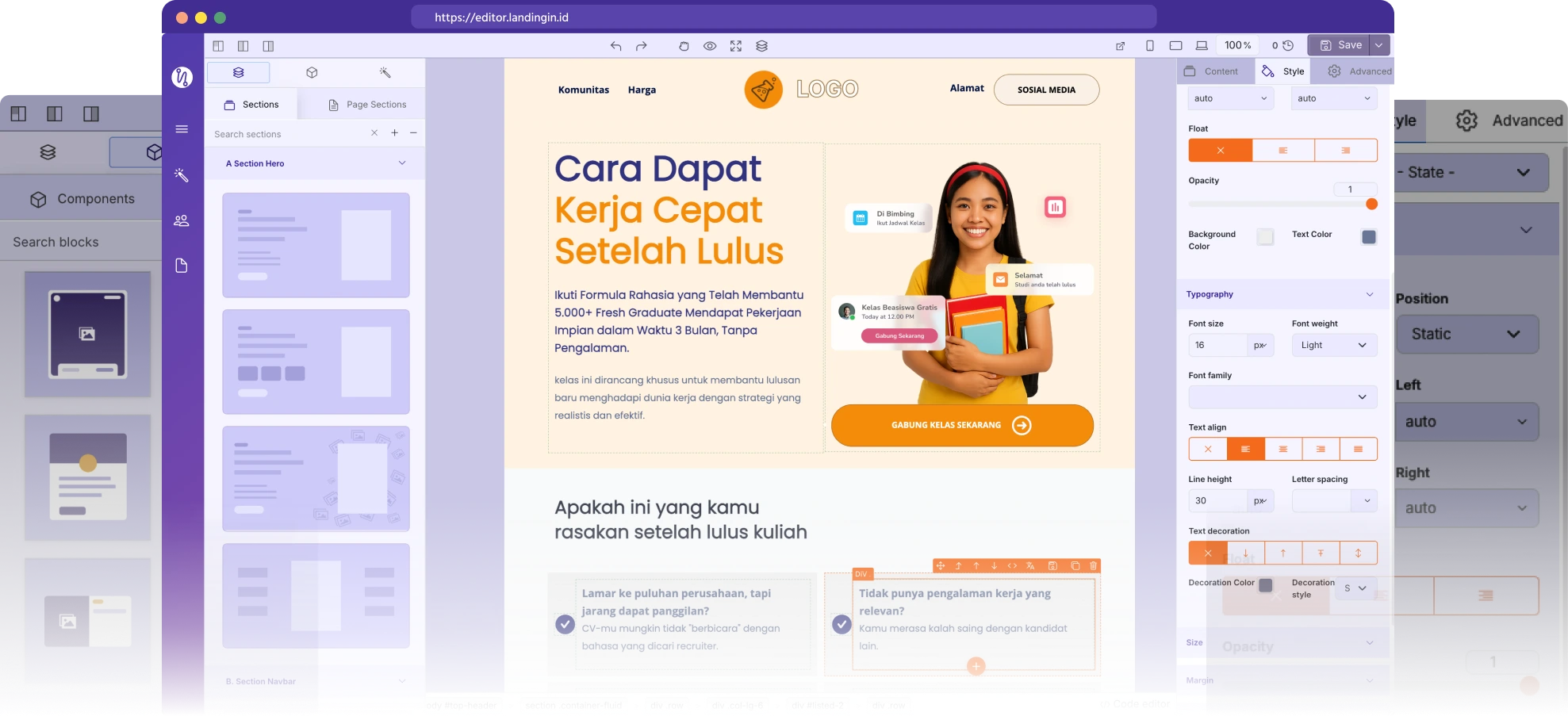 template high convertion siap pakai dengan editor yang super mudah digunakan.